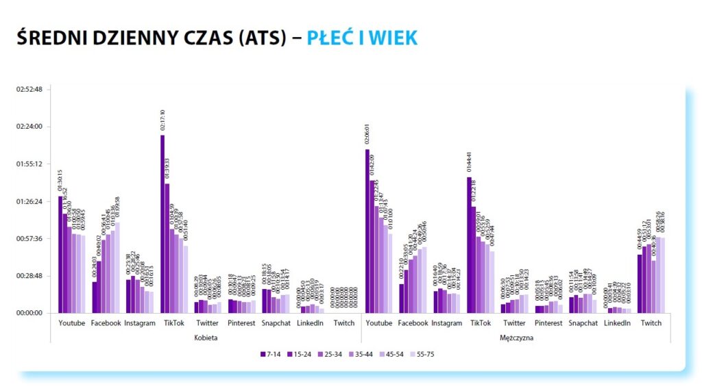 Rys.1 średni czas spędzania czasu na poszczególnych platformach społecznościowych. Źródło – raport Gemius.