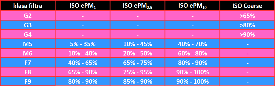 W połowie 2018 roku nastąpiła rewolucyjna zmiana w kwestii klasyfikacji i testowania filtrów powietrza. Nowa klasyfikacja filtrów została ustalona w oparciu o osiągnięty poziom ochrony przed cząstkami stałymi (PM) o różnych wielkościach w czterech kategoriach: Zgrubne, ePM10, ePM2,5 i ePM1.