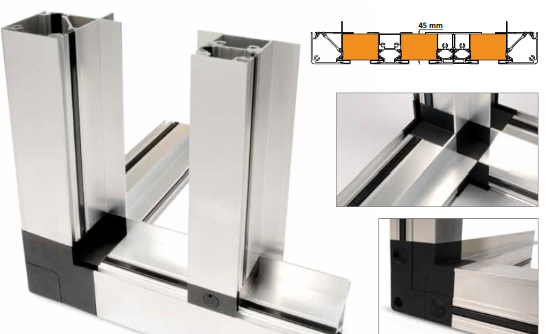 – Profile kompozytowe – wykonane z materiałów o bardzo niskim przewodnictwie cieplnym, całkowicie eliminujące mostki cieplne,