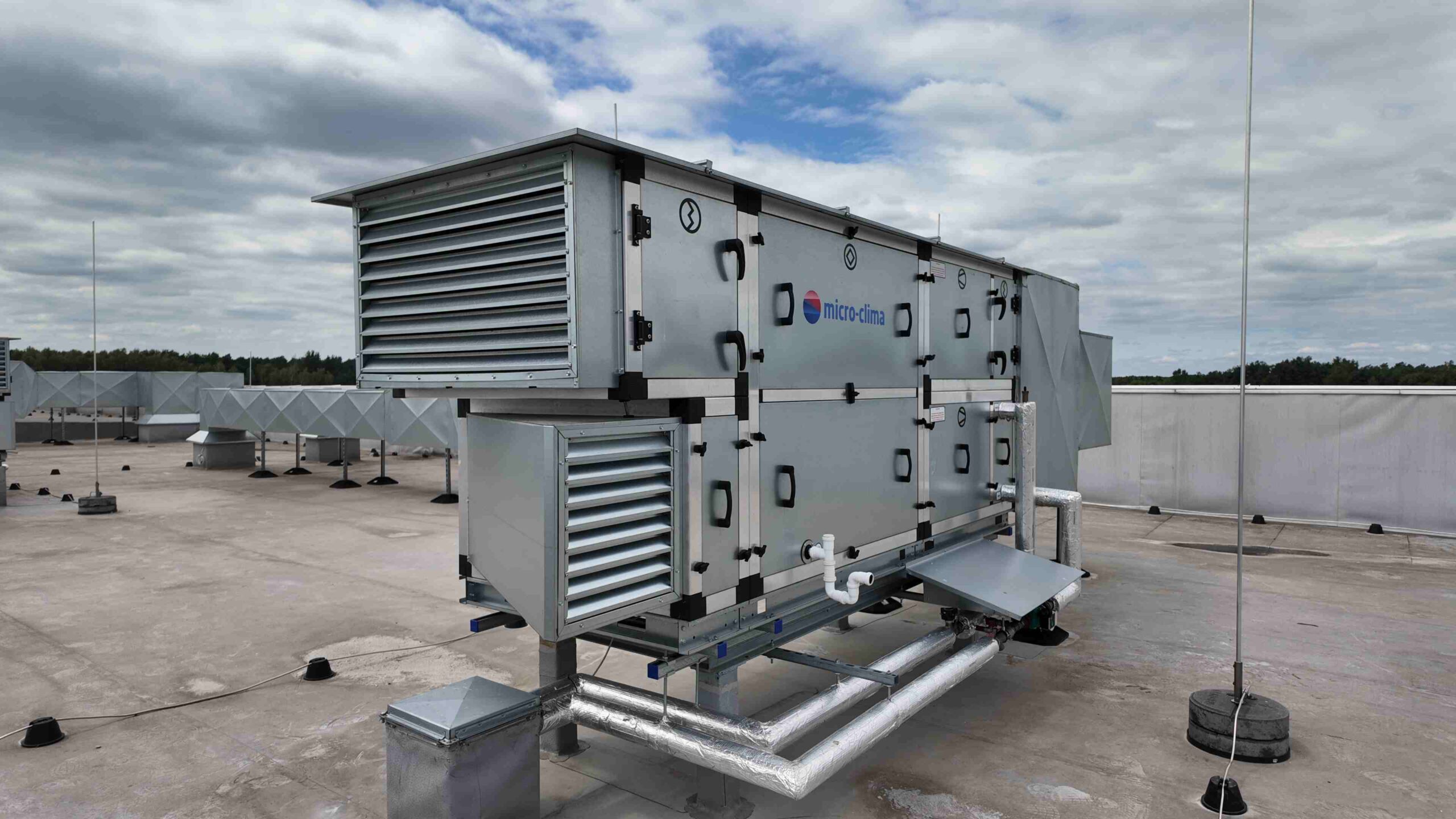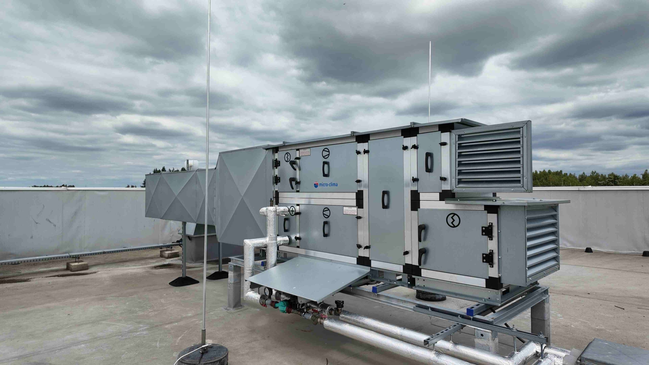 W naszych urządzeniach stosujemy prostą, ale skuteczną zasadę – czerpnia i wyrzutnia są usytuowane pod kątem 90 stopni względem siebie. Taki układ minimalizuje ryzyko mieszania się strumieni powietrza, nawet przy trudnych warunkach atmosferycznych. Na zdjęcia poniżej możesz zobaczyć przykład takiego rozwiązania – praktycznego i zgodnego z przepisami.